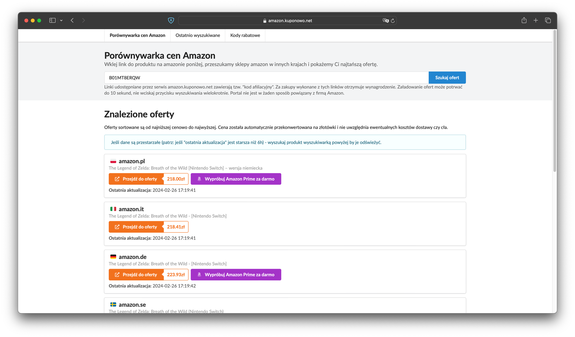 Porównywarka cen Amazon